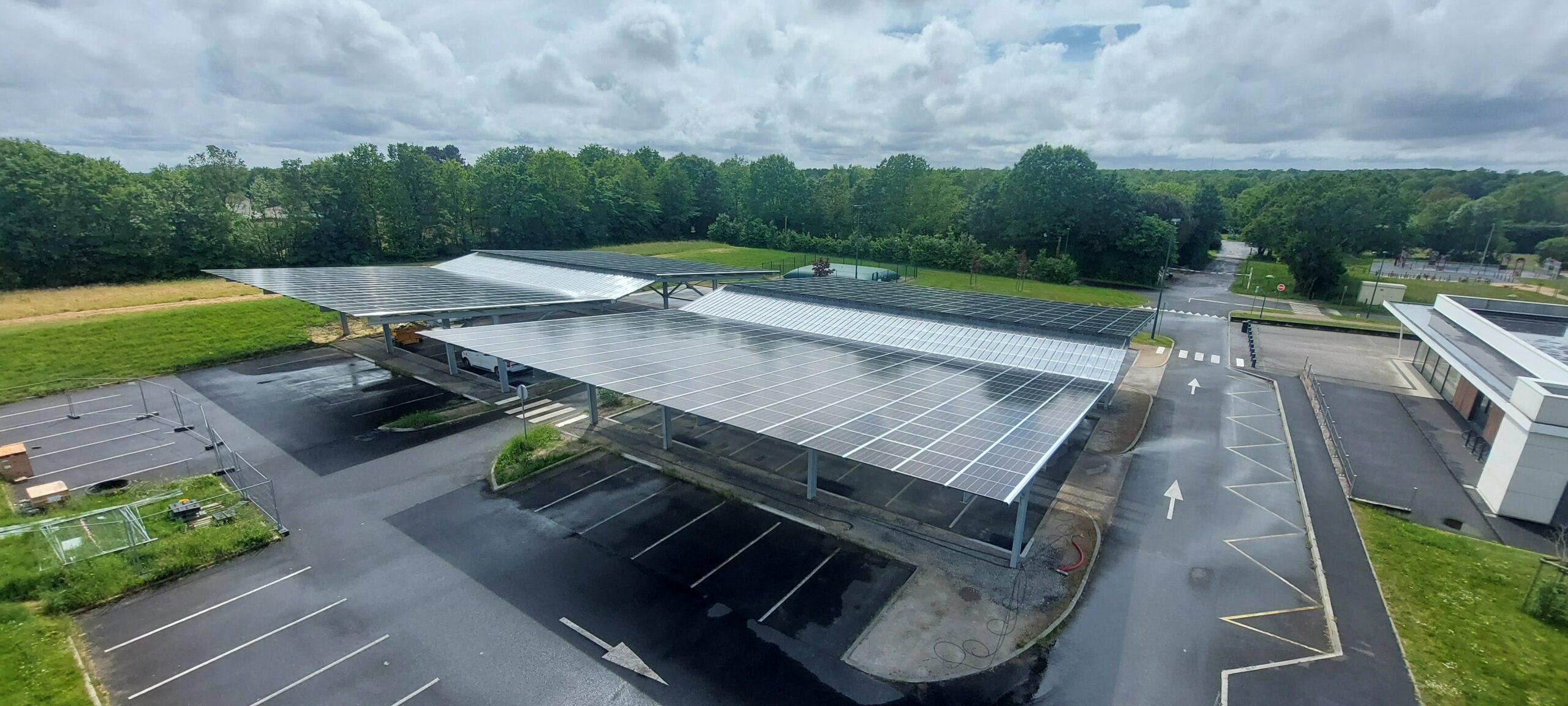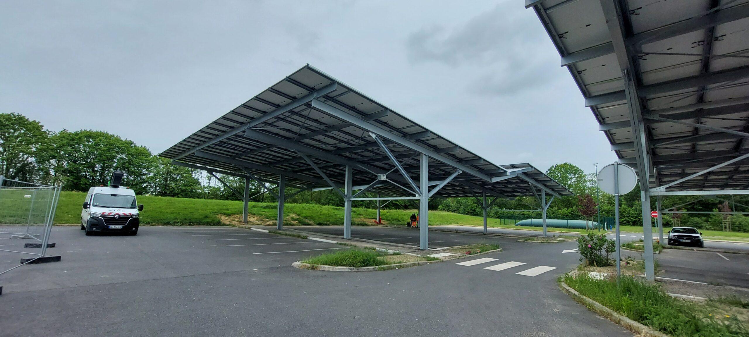Un liaisonnement en polycarbonate assure la jonction entre les ombrières permettant de laisser passer la lumière naturelle sous la structure, et de préserver la cohérence architecturale de l’ensemble.